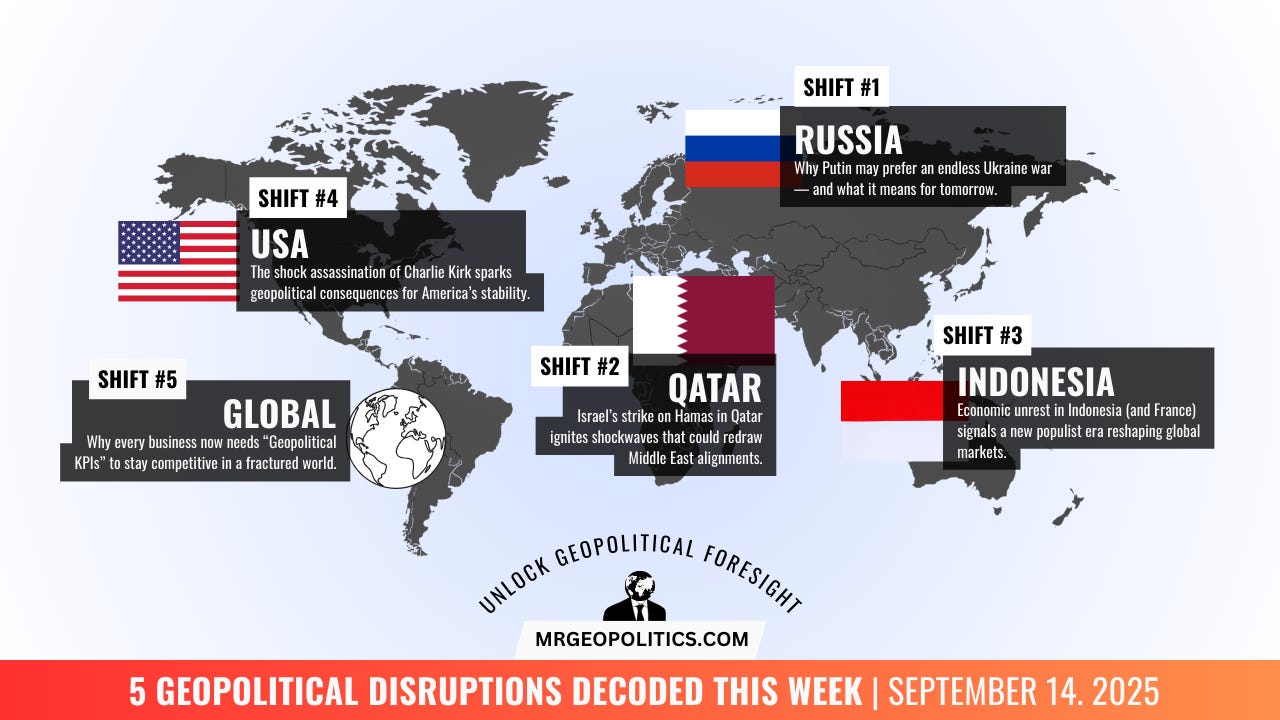 This week, the disruptions spanned from why Putin may prefer an endless Ukraine war⌠to Israelâs strike on Hamas in Qatar igniting regional shockwaves⌠to why every business now needs âGeopolitical KPIs.â