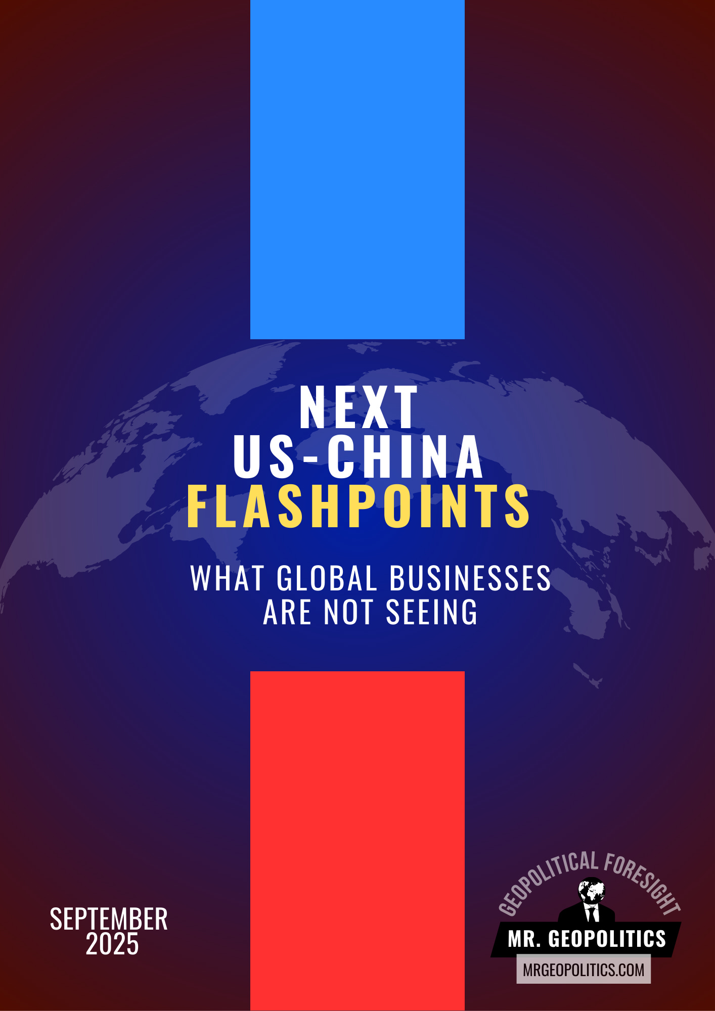 This report delivers geopolitical foresight on the next flashpoints in the US–China fight. These are the shocks and scenarios that businesses are not prepared for, but will define the future of everything: trade, technology, investment, economic flows, and more.