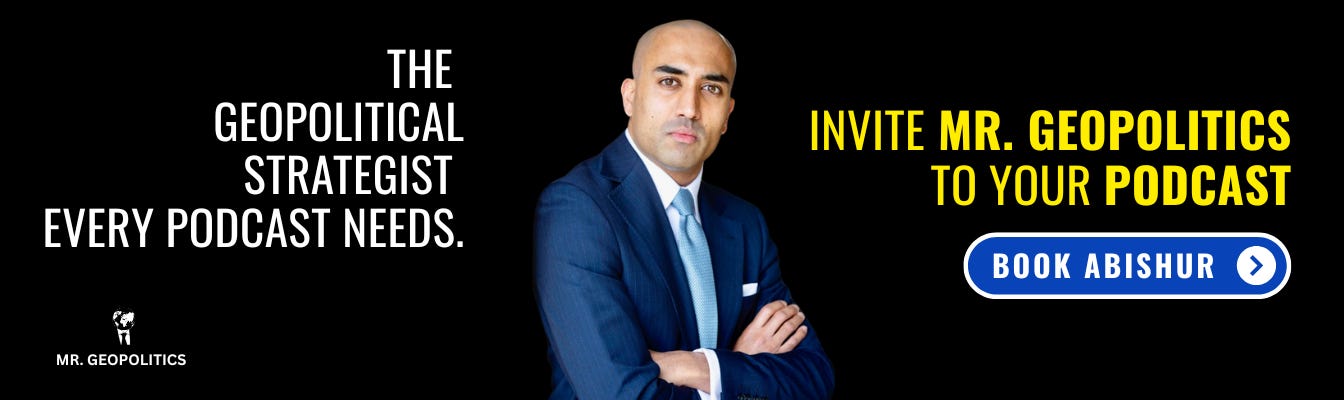 Mr. Geopolitics is the property of Abishur Prakash/The Geopolitical Business, Inc., and is protected under Canadian Copyright Law. This includes, but is not limited to: ideas, perspectives, expressions, concepts, etc. Any use of the insights, including sharing or interpretation, partly or wholly, requires explicit written permission.