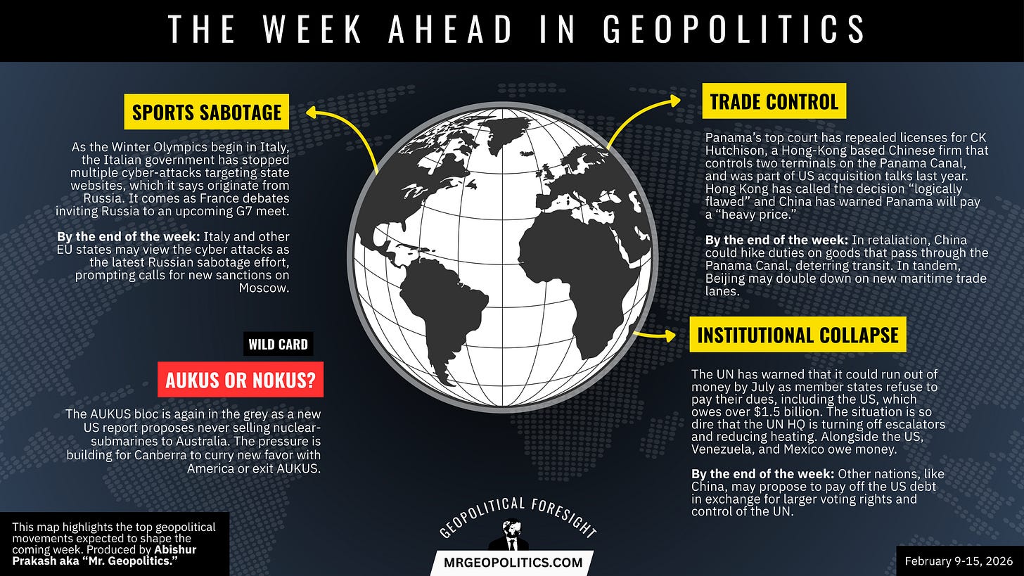 The old structures of the world are falling apart. What was supposed to happen over decades is happening over months. The latest edition of “The Week Ahead in Geopolitics” is below.