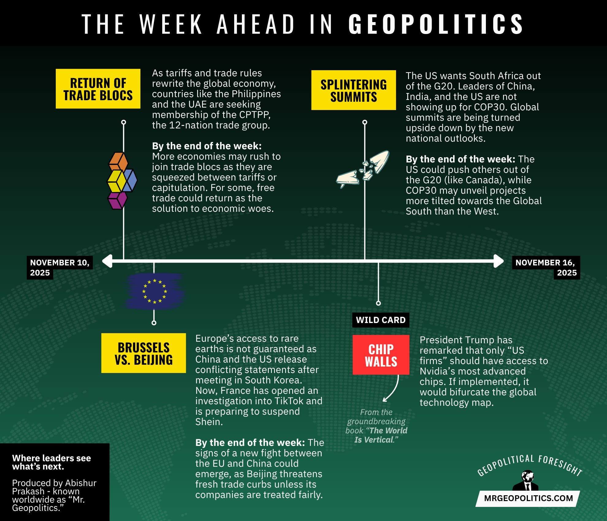 Three continents. One reality. Geopolitics has become the strongest force in the global economy. The latest edition of “The Week Ahead in Geopolitics” is below.
