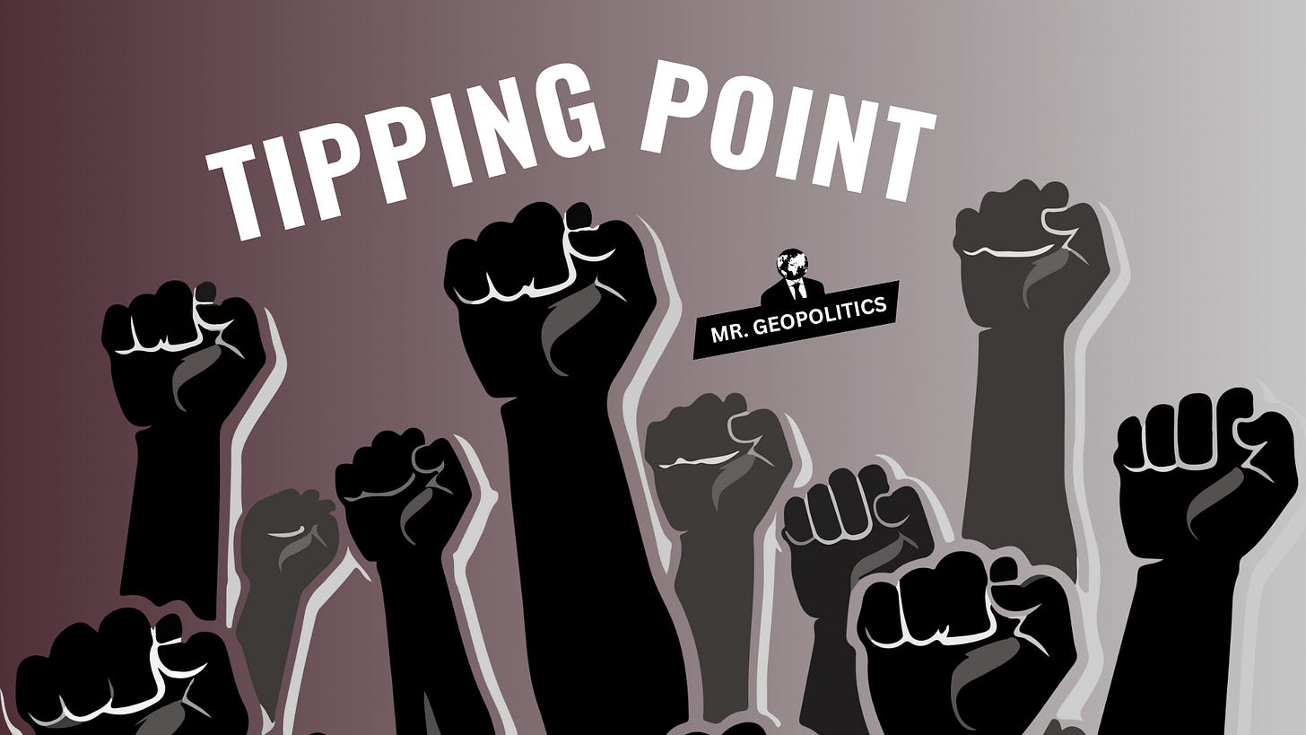 The tipping point is a battle between different sects within Western societies. Both believe the role and function of government must change. The difference is what the government should do.